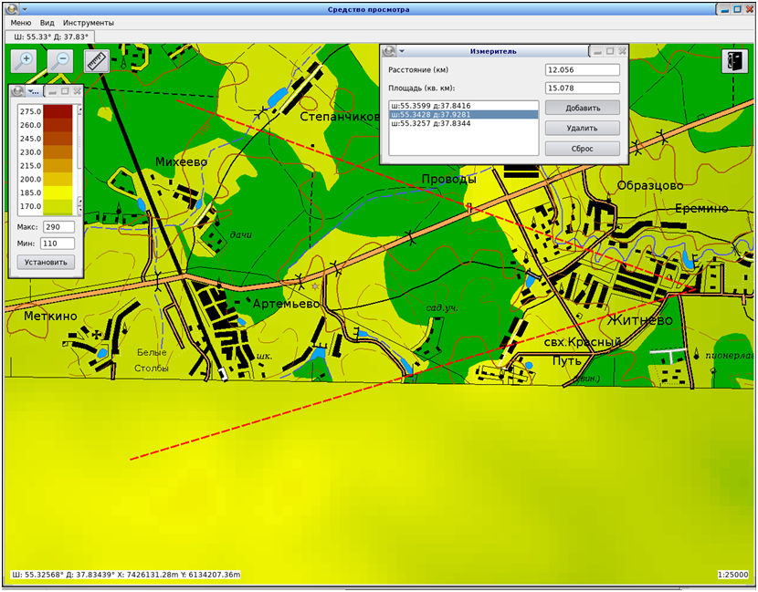 - Обеспечение решения задач анализа и моделирования оперативной обстановки, в том числе с построением рельефной модели местности